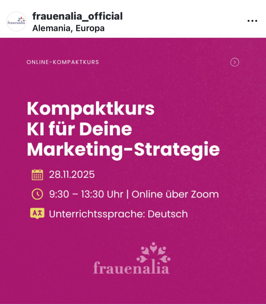 28.11 um 9.30 bis 13.30 Online Kompaktkurs KI für Deine Marketingstrategie -Fraunelia.com